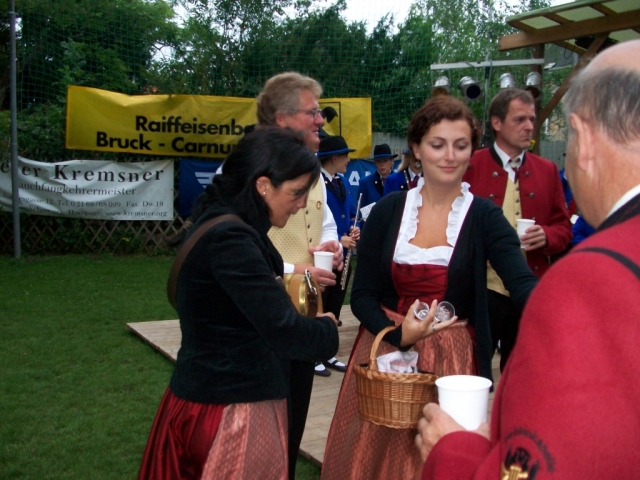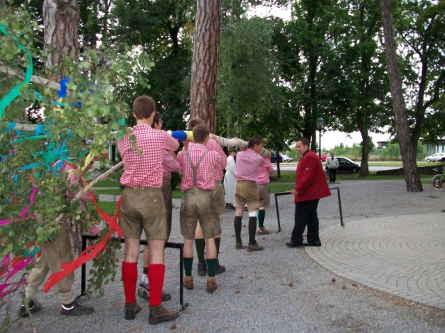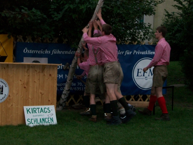Nach der Kirtagmesse wurde der Kirtagbaum von den Burschen zum Festgelände getragen. Die Jugendblasmusik begleitete den Festzug mit einigen Märschen. Danach wurde ab 20 Uhr ein 3-stündiges Dämmerschoppen für die Gäste zum Besten gegeben.