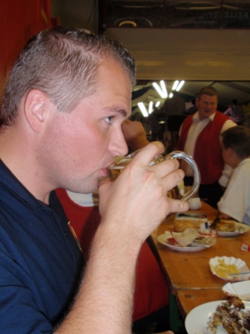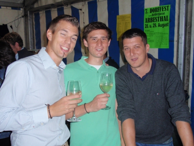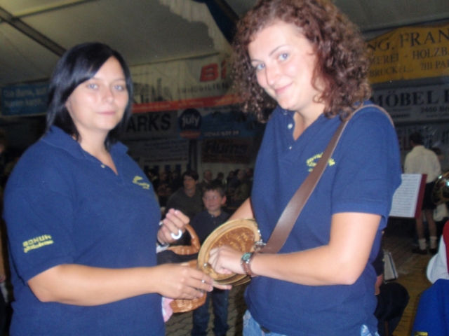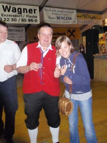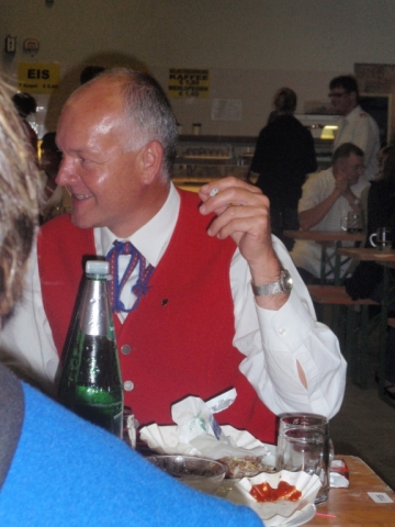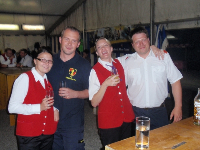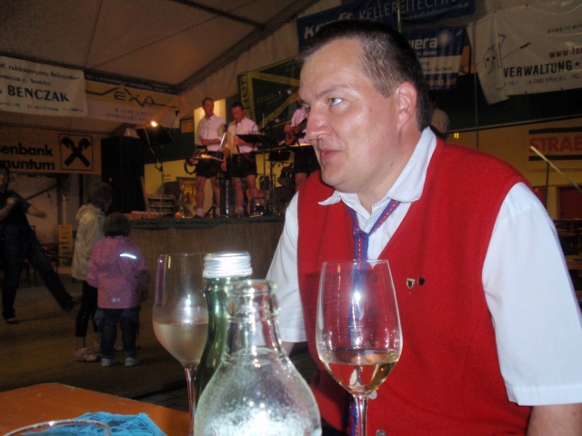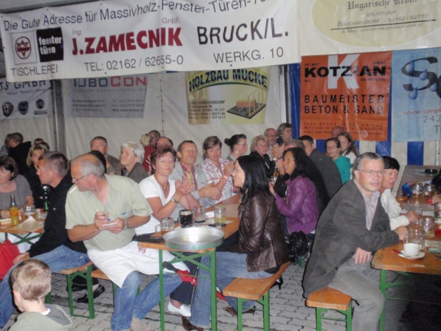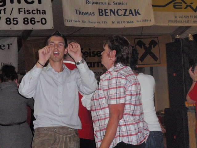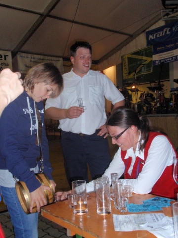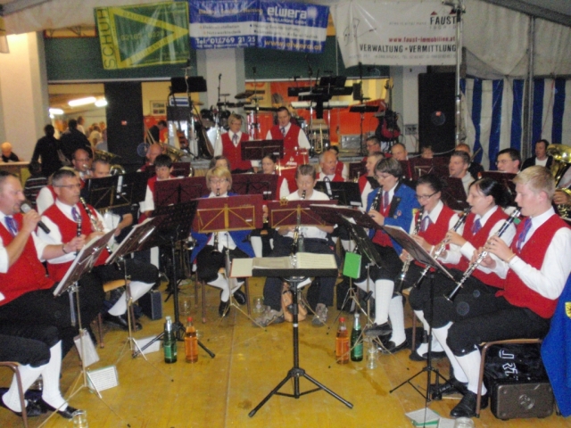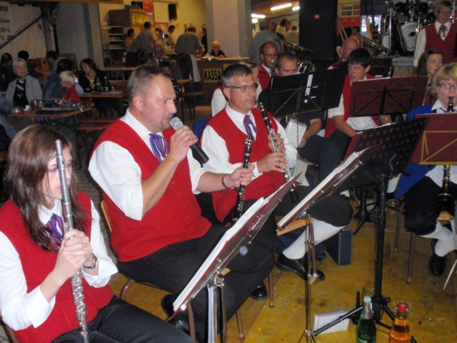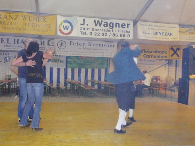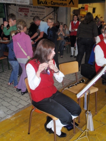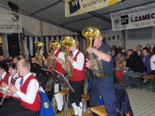 Ab 18.30 Uhr spielten wir ein 2-stündiges Dämmerschoppen, während dessen sich das Festzelt mit zahlreichen Besuchern füllte. Mit Musikstücken wie „Abba Gold“, „Böhmischer Traum“, „Dem Land Tirol die Treue“, usw. wurde hervorragende Stimmung in das Festzelt gebracht. Als weitere Attraktion sang auch unser Kapellmeister Bernhard Fischer mit dem erst 5-jährigen Matthias Schwarz die Polka „Hei, Ihr Gänschen, hei!“ Nach unserer musikalischen Darbietung wurde die Tanzfläche geräumt und für die Musikgruppe „Die Urigen“ Platz gemacht. Diese sorgte bis in die frühen Morgenstunden mit Tanzmusik für ausgezeichnete Unterhaltung im Festzelt, wobei zahlreich auf den Tischen und Bänken getanzt wurde.