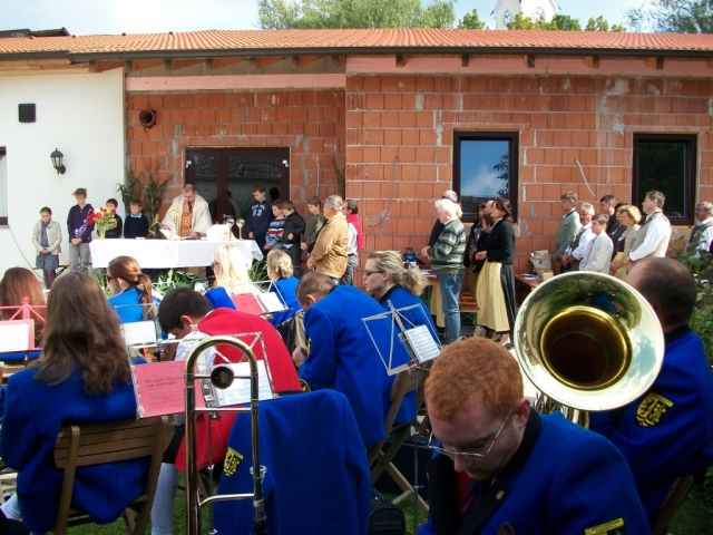 Dabei feierte unser Herr Pfarrer Pater Paul Gnat um 10 Uhr mit zahlreichen Gemeindebürgern die heilige Messe im Pfarrgarten. Im Anschluss daran begeisterte die KUGRUGÖ mit einigen Tänzen das Publikum. Ab 11 Uhr unterhielt die Jugendblasmusik mit einem Frühschoppen die noch zahlreich anwesenden Gäste.