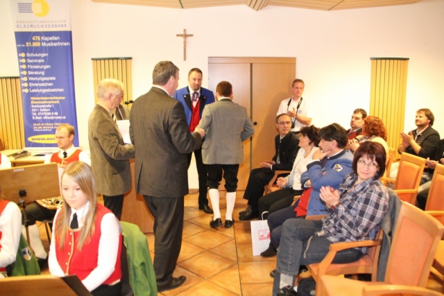 Unser Kapellmeister zeigte sich über die Ehrung sehr erfreut und verwies mehrmals darauf, dass diese Auszeichnung für einen Kapellmeister sehr schön ist, aber auch nur erreicht werden kann wenn die musikalische Qualität passt.